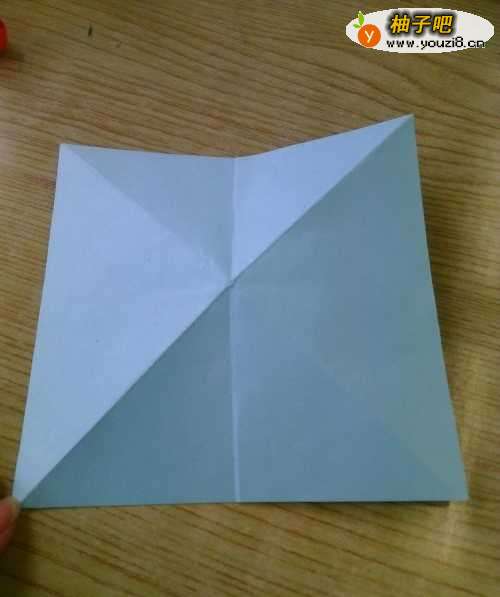 3四个角沿着中轴线折上去,然后把两侧向内折,折出四个整齐的三角形