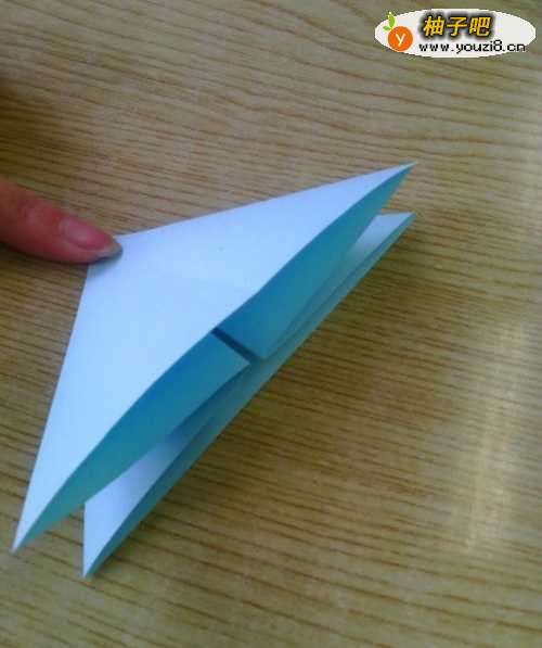 4把上面的有开口处的小三角,塞到中间大三角的缝里去,压扁