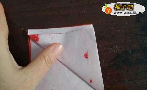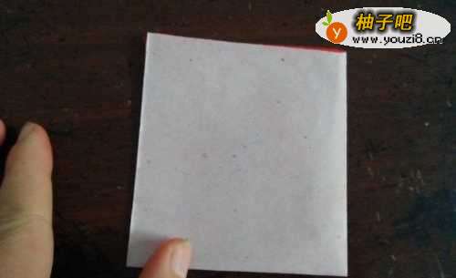 准备好一张正方形红纸,一把剪刀,笔。先把红纸的两边对折。