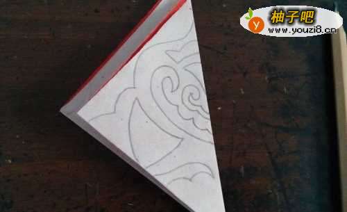 4把斜边向着右手边,在上边画上要剪的图案,如图。