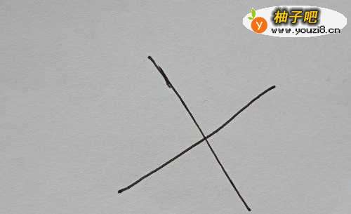 2然后再画两条垂直线,如图所示形成一个米字型。