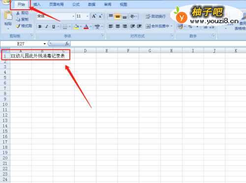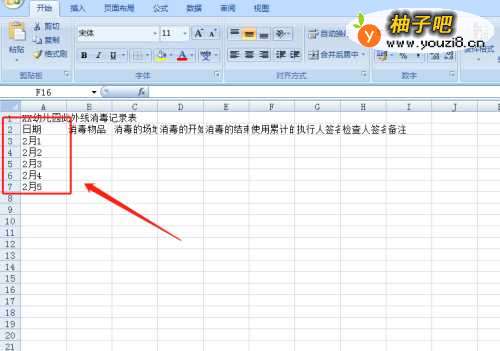 2第二步:打开表格进来“开始”这个页面,然后填写出“XX幼儿园此外线消毒记录表”如下图所示: