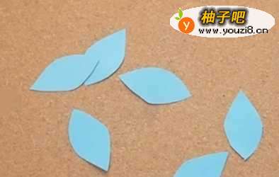 从彩色美术纸上剪下几个花瓣。挑选一张好看耐用的并且颜色欢快明亮的美术纸,比如说黄色。用剪刀剪下最少六片花瓣,每个最少10厘米长。如果你喜欢,你还可以用铅笔轻轻的画出花瓣的轮廓,然后沿着线的内侧剪,这样可以避免出现铅笔的印记。你还可以用一片花瓣作为模板,来剪其余的花瓣,或者你还可以创造6个略微不同的形状——毕竟,一朵真的花上的花瓣也不可能完全一样。