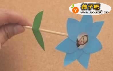 5给花梗加上一些叶子。要制作叶子,你可以仅仅从纸上剪下它们,然后用同色马克笔画出脉络,或者从手工店里买些假叶子,或者甚至可以用绿色的羽毛。然后将它们和花梗粘在一起,你可以用胶带、订书针,亦或用一点胶水。