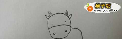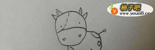 4画出牛的身体,牛脚是可爱的尖尖的。