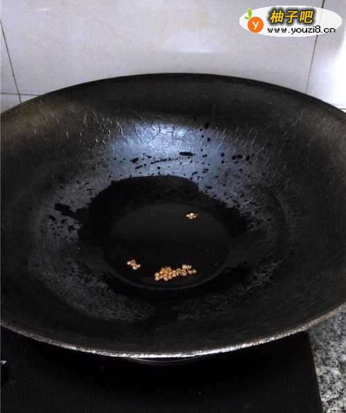 5炒锅烧热,倒入适量植物油,放入花椒炒香。