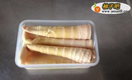 春笋开袋倒入容器,用冷水泡30分钟以上;