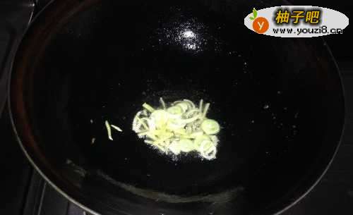 4点火,加适量食用油,葱、姜爆锅后加春笋段翻炒,再加酱油、食用盐、五香粉翻炒,改小火盖锅盖焖7~8分钟(如果觉得干,可以加温水适量);