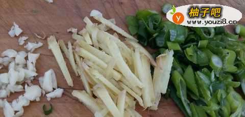 5把葱姜蒜,铲出,装碟,备用