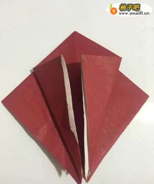 2第二步 折叠完之后 按图示 掀起来左右两个角 向里折叠至中线