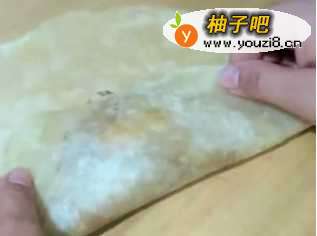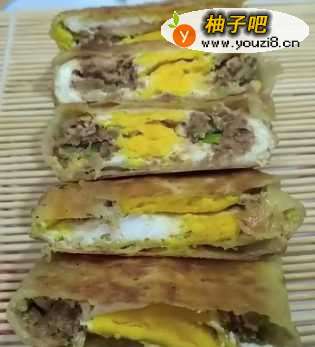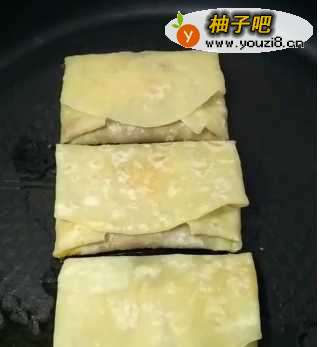 5然后用饼把肉和鸡蛋包起来,四面都包好