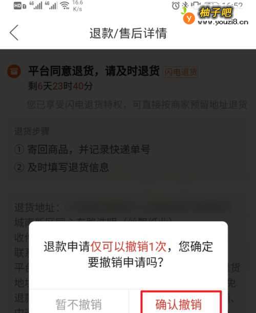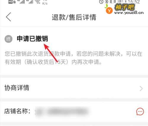 6点击后,页面会显示申请已撤销,即可取消退货售后申请。
