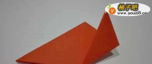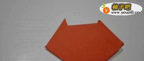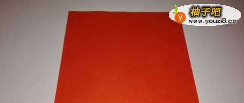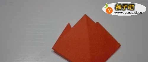 5翻好面后,我们将彩纸顶部的角向彩纸后面折去(如图1)