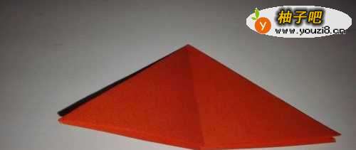 准备好一张正方形彩纸,将彩纸的角对角对折三次(结果如图4)