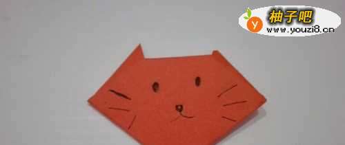 6折好后,我们在彩纸的相应部位画出狐狸的五官。(如图1),那么我们的狐狸折纸就制作完成啦。