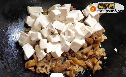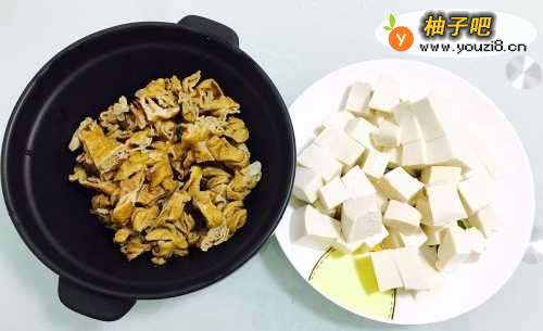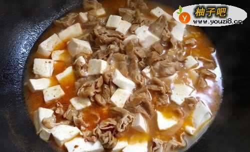 5然后把豆腐倒进去,一次性加满冷水,盖上锅盖,大火烧开即可。