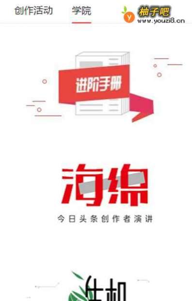 2登录主页,找到学院,可以看到进阶手册,创作者演讲,点击进入。