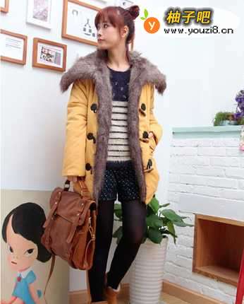 2黑白相间的条纹毛衫和黑白点的毛呢短裤是不是很搭啊,看起来很时尚哦,黑色的打底裤袜能够拉伸腿部的线条,充分秀出美腿,舒适的雪地靴是温暖又舒适的选择,外出的话搭配一款翻领毛边的棉服特别的时尚不说,还可以遮挡住略显胖的臀部,看起来非常的苗条哦。