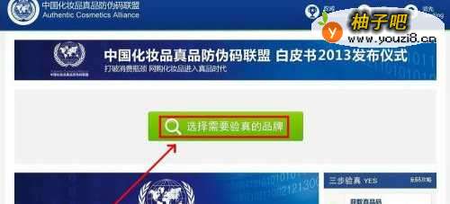 2进入后,选择页面正中间的——选择需要验真的品牌,点击
