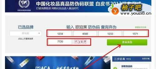 4选择后,再输入化妆品的防伪码进入,输入后,输入验证码,输入完,选择——查询真伪。