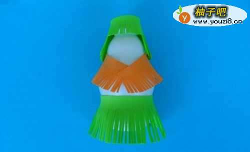 6用双面胶安装到身体上,并画出五官