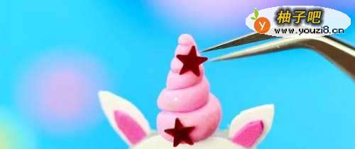 5将粉色的轻黏土卷成独角兽的角