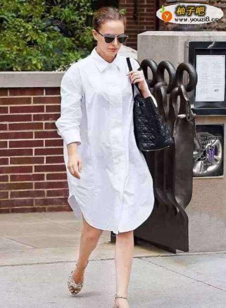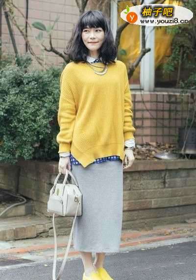 5衬衫裙搭配针织衫。针织衫是温柔女性的象征,捎带锐气感的衬衫裙搭配温柔的衬衫裙会显得整个人温婉大方,甜美无比。这身搭配非常适合产后刚刚瘦身成功的妈妈们。
