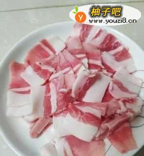 根据自己的喜好,将喜好的青椒切成片或者是段,五称颂花肉切成片。