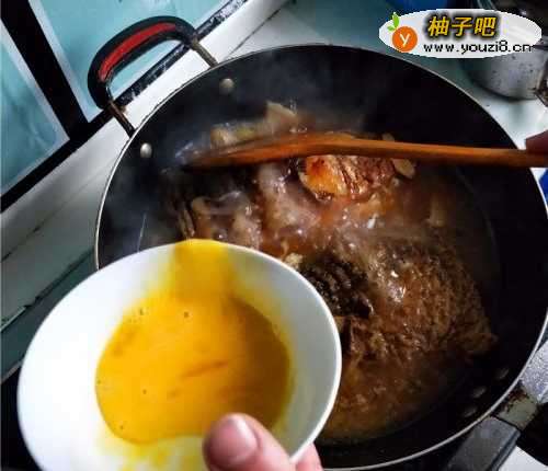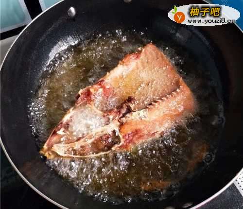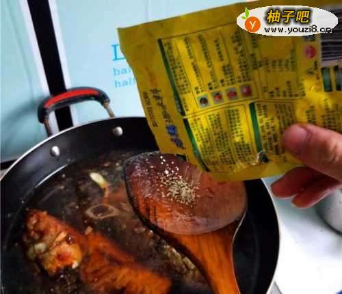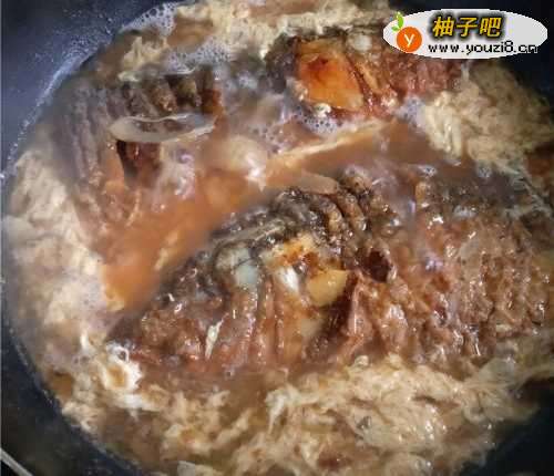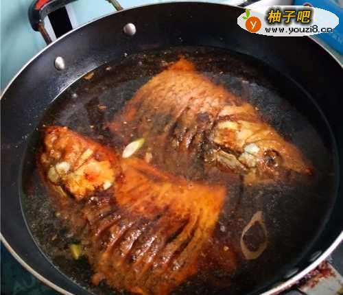 11将炸好的鱼放进去。如果水不够,可以再添些。浮过于表面即可。