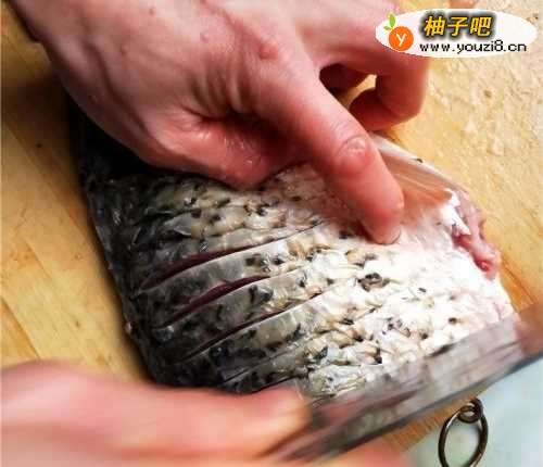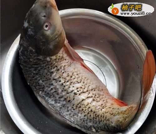 将鲤鱼杀好洗净。我买的这条比较大,整条锅内做不开,只好用了一半。