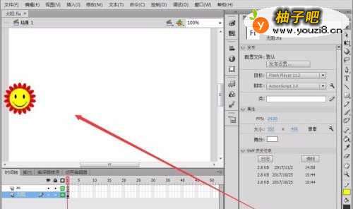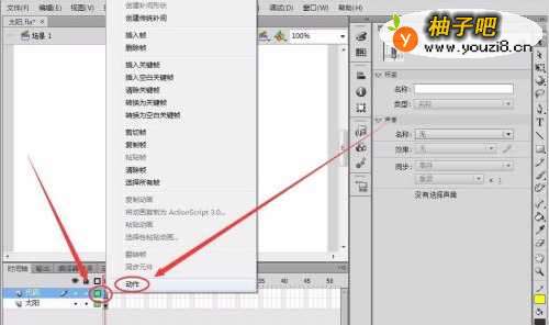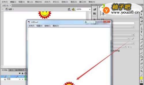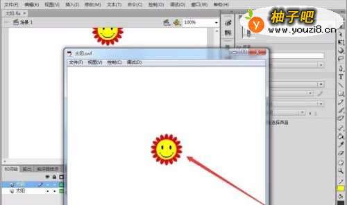 打开一个已有的Flash文档,本例为“太阳”作品。
