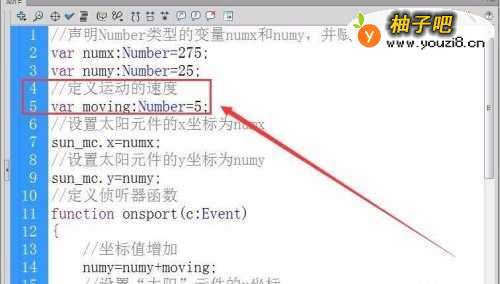 5接着,定义一个浮点数型变量,用来存放“太阳”元件运行的速度。