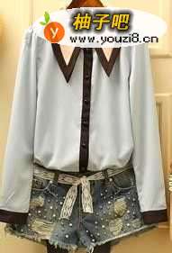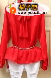 衣领镶亮片在太阳的照耀下闪闪发光,显得很华丽,胸前系蝴蝶结多分甜美优雅,长袖系扣衬衫,腰上再系个腰带凸显出身材