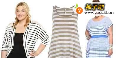和条纹说拜拜,不管是横条纹还是竖条纹,条纹会拉宽人们的视线,放大事物本身的宽度和长度,所以条纹只会让胖显得更胖,仅此而已。