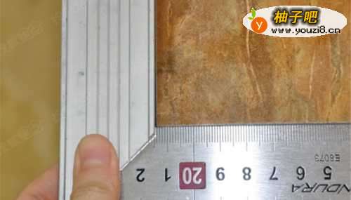 5瓷砖规格度:拿尺子测量瓷砖四条边的长度,看误差多大,再用直角尺测量瓷砖的角度是否直角。