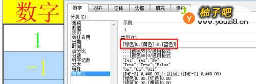 3那其他颜色应该怎么办呢?先在数字格式里随便选择一个,然后选择最下面的自定义就可以发现在类型里会自动生成一行代码。