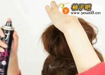 7第七步:再将发髻拉松散一些,形成蓬松的打发髻,喷上定型液,让发髻的凌乱感保持的更加的长久。最后整理下凌乱的发丝,这款时尚甜美的韩式花苞头就盘好了。