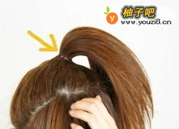2第二步:用皮筋将聚集扎发虚处的直发扎成紧致光洁的高马尾辫。