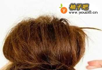 4第四步:将直发马尾辫用密齿梳倒梳打毛,让顺直的直发变得凌乱起来,将凌乱的马尾辫以扎发处为中心,将马尾发丝一缕缕的向内盘起来,用发卡固定住。