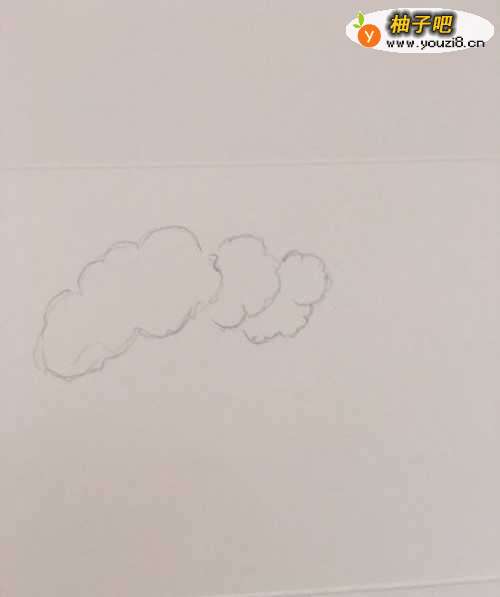 第一步 先画上几朵小白云 作为花菜的花蕾轮廓