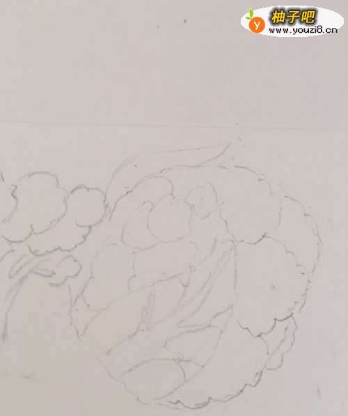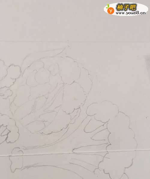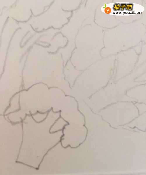 5第五步 再画上一大枝子切过的花菜朵喽 再丰富一下这个组图