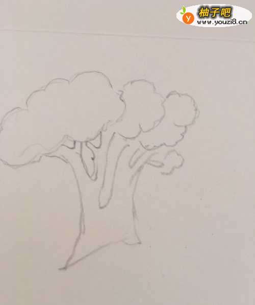 2第二步 再在这几朵小白云朵的下面 画上小树桩样的图形