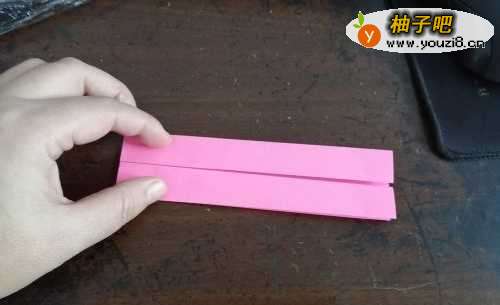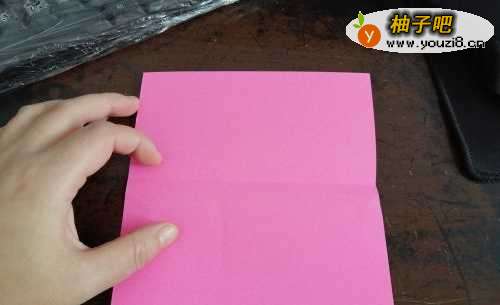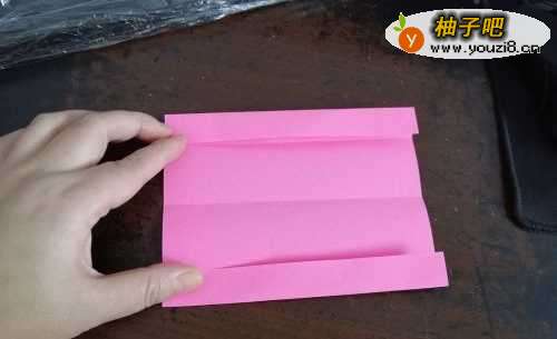 先把彩纸的上下边对折,然后再把上下边向着中线对折。