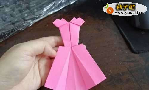 看着今天折的裙子,觉得满满的少女心在爆发。小伙伴们折好后,可以加上点装饰品,亮片之类的,那就更漂亮了。