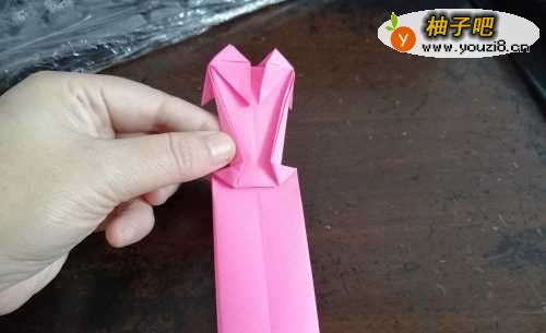 6然后再把下面的裙摆向外折,翻到另一面,把两个角向内折,图三是完成图。