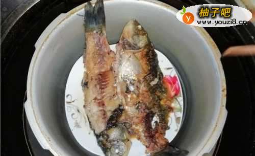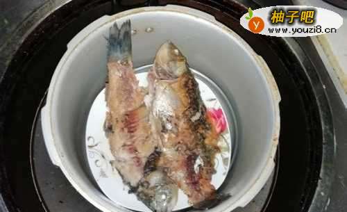 6然后放进高压锅里压一会儿,鱼会变得更软