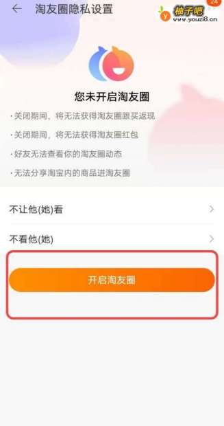 5进入淘友圈页面后就可以根据自己的需求选择关闭或者打开淘友圈。