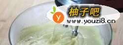 7为了让冰淇淋更好吃,冰淇淋液冷冻到开始结冰以后,取出来,用电动打蛋器搅打片刻,重新放入冰箱冷冻。