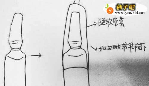 3将白色软管套再次套在剩下的瓶身上,大概1/2处