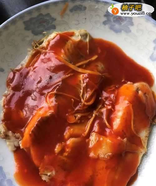 3把番茄酱倒进锅里,加点水,搅动以免糊锅,煮开就可以了。把番茄酱浇到煎好的鲷鱼片上面。大功告成。番茄鲷鱼片就做好了。喜欢的朋友赶紧试试吧。